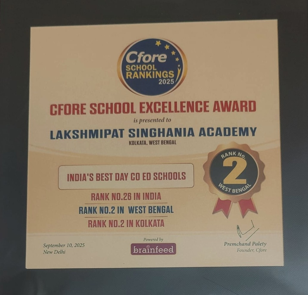 Lakshmipat Singhania Academy proudly received the prestigious award for Excellence in Academics (CBSE) at The Telegraph School Awards for Excellence 2025.