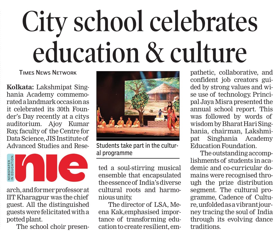 Lakshmipat Singhania Academy 12B, Alipore Road Kolkata - 700027 +91 33 24793600 / 24792176 office@lsakolkata.com